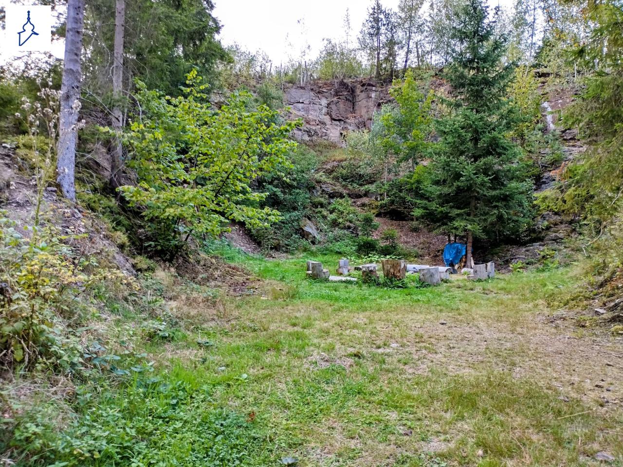 Ohniště v bývalém lomu na kámen ve směru na Poděšín. K místu vede cesta, která se vine mezi loukami a poté podél lesa a potoka